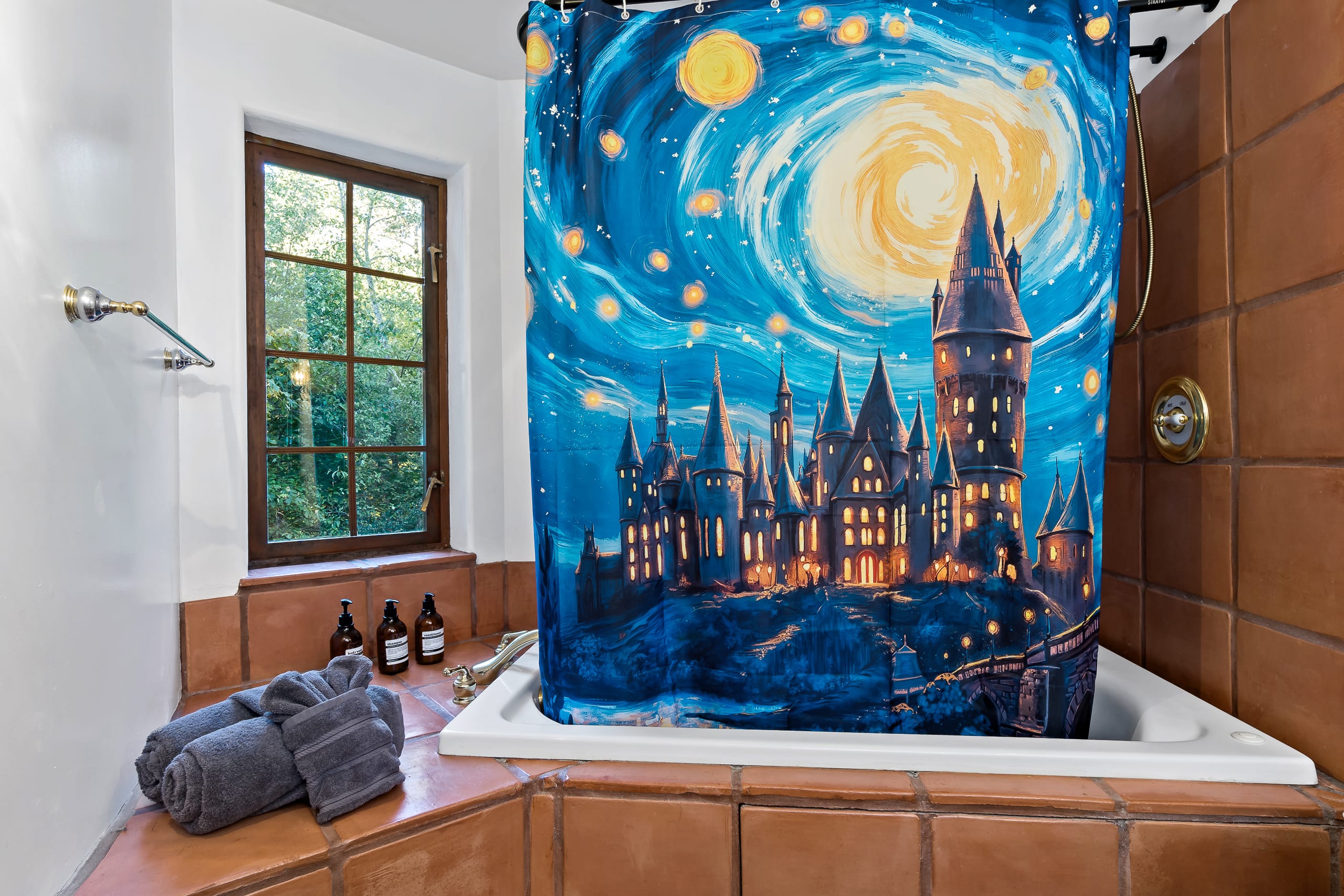 Nestled within an enchanted forest, this castle-like retreat is your portal to a wizarding-inspired adventure.