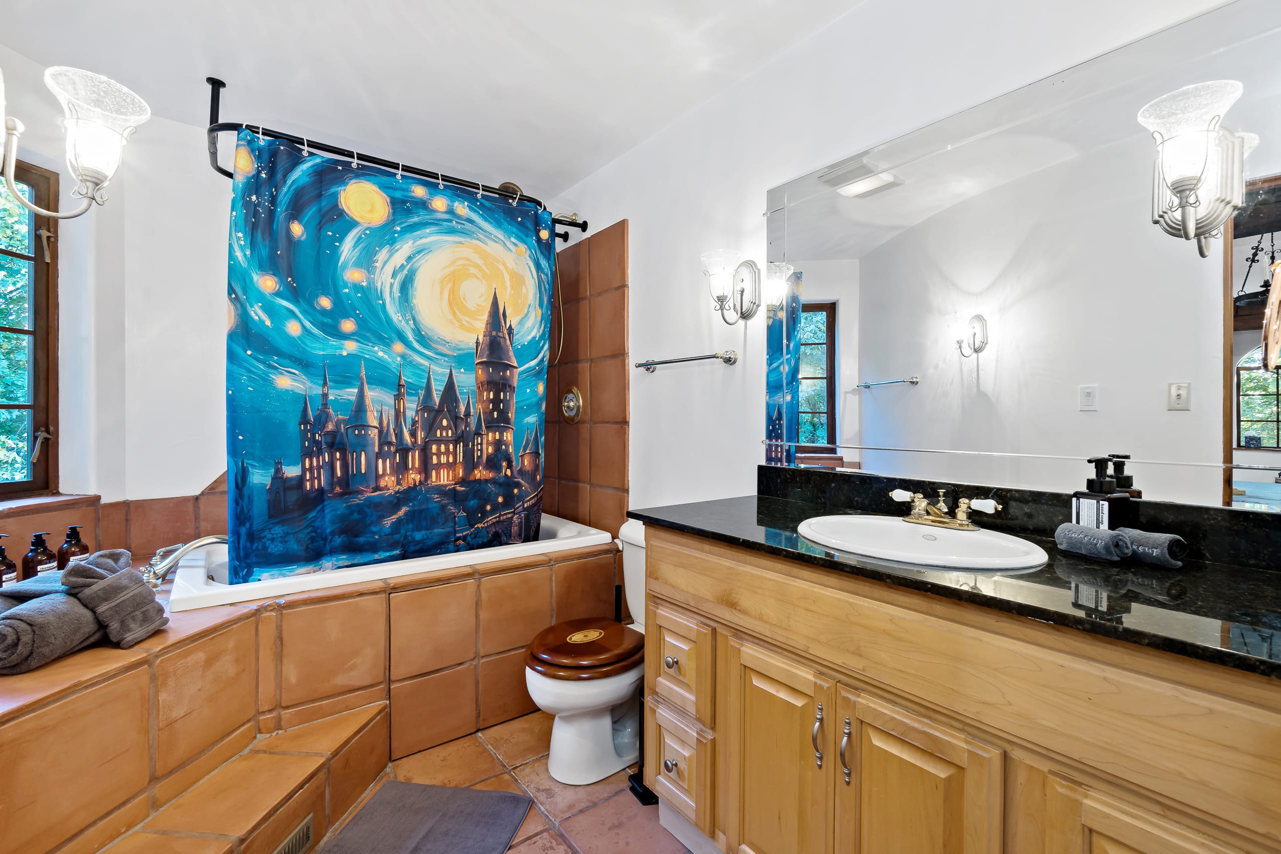 Nestled within an enchanted forest, this castle-like retreat is your portal to a wizarding-inspired adventure.
